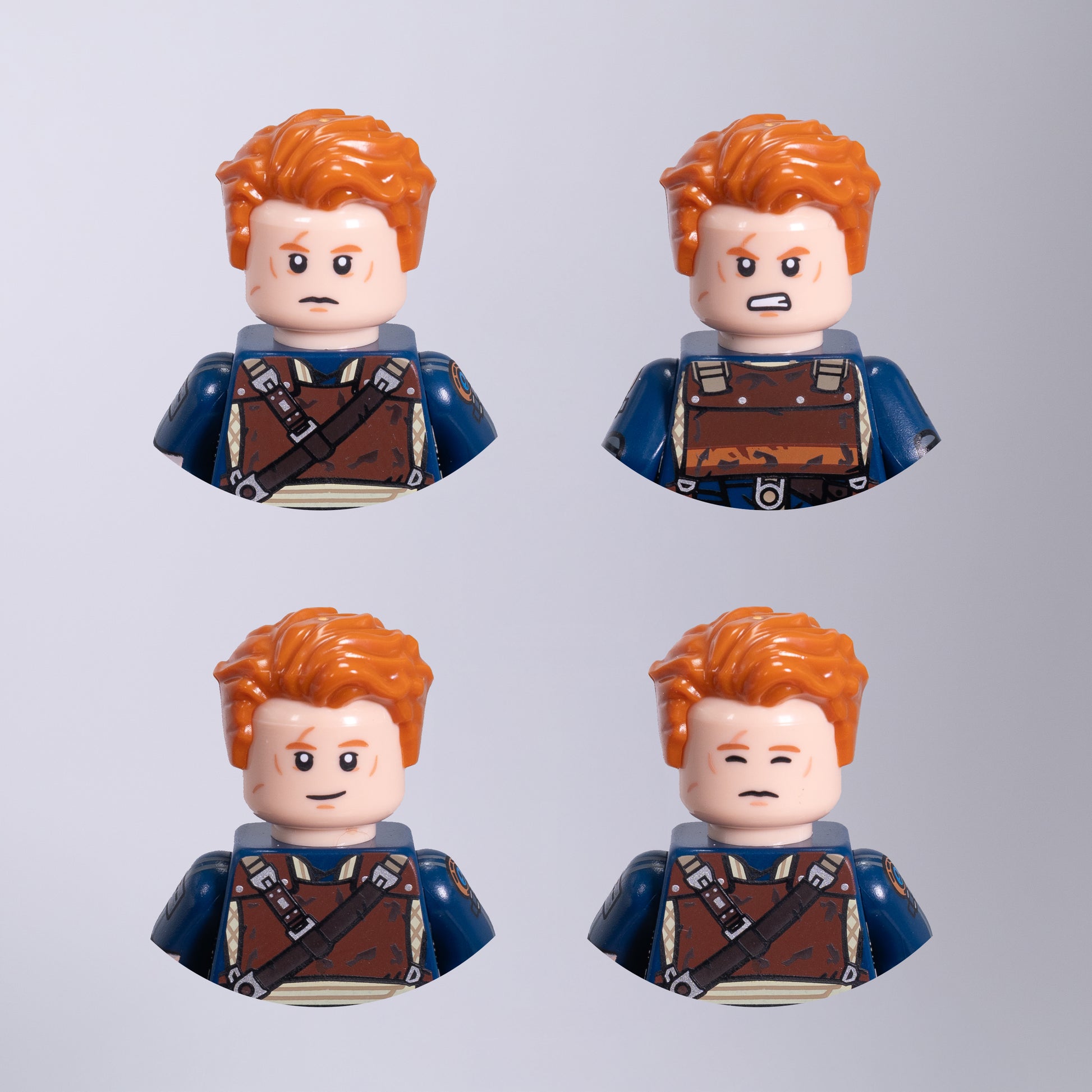 This Bundle includes two minifigures with dual sided heads and two separate single sided heads.